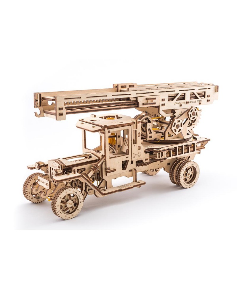 При цьому, як і всі моделі, збирається пожежна машина поетапно без клею за дуже докладною кольоровою інструкцією. Всі деталі вже вирізані і просто виймаються з дошки. Спочатку збираються окремі блоки, такі як корпус, карданний вал, колісна база, платформа, драбина, які потім трансформуються в готову модель.