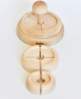 Це не просто пірамідка, а маленька історична пригода: 16 дерев’яних кілець, що символізують покоління, з’єднані у природну і тактильну мандрівку. Легкі, гладкі на дотик деталі без лаку чи фарби запрошують дитину торкнутися спадку, складати його у послідовність, уявляти, що ховається за кожною формою. Гра стимулює розуміння спорідненості, увагу до деталей та розвиток уяви.
