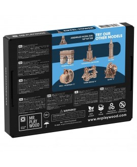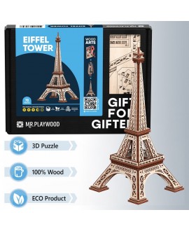 Зменшену копію 324-метрового витвору архітектора Гюстава Ейфеля тепер можна зібрати власноруч з дерев’яних деталей, що входять до комплектації 3D-моделі величної вежі від Mr.Playwood, їх необхідно лише від’єднати від планшетів і зібрати без клею за інструкцією.