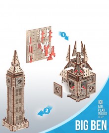 Зменшену копію Біг-Бена тепер можна зібрати власноруч з дерев’яних деталей, що входять до комплектації 3D-моделі від Mr.Playwood, які необхідно від’єднати від планшетів і зібрати без клею за інструкцією.