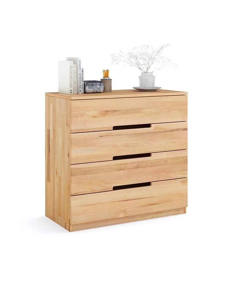Основний матеріал - екологічно чиста натуральна деревина з листяних порід, а фасади зроблені з цільного буку з просоченням натуральним маслом, показують природну красу та фактуру дерева. Оригінальності комоду надає відсутність виступаючих ручок.