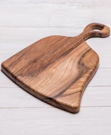 На цій дерев’яній дощечці можна не тільки нарізати продукти для приготування смачних страв, а й подавати готові закуски рідним чи гостям. Завдяки нестандартній формі дана дощечка стає оригінальним дерев’яним аксесуаром на кухню.