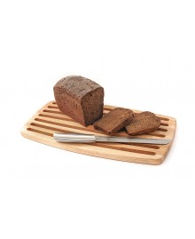 Дошка має фрезеровані канавки, в яких при розрізанні залишаються крихти з хліба. Канавки повторюють вигнуту контурну лінію дошки, завдяки чому дошка має стильний сучасний вигляд.