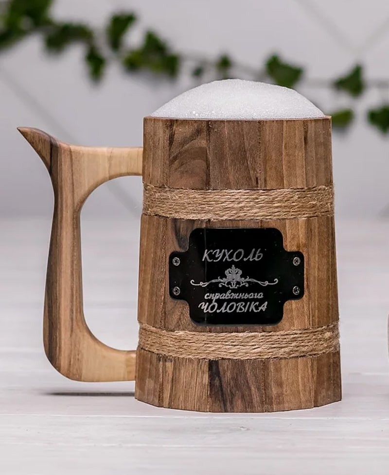 Кухоль буде відмінним варіантом для подачі хмільних напоїв, так як зроблений із якісної деревини грецького горіха.