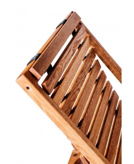 Завдяки витривалій дерев’яній конструкції, шезлонг стійкий до впливу вологи та температур, тому ідеально підходить для використання в саунах, банях або у відкритих релакс-зонах. Також це практичний вибір для HoReCa – він вдало доповнить простір готелю, кафе чи ресторану.