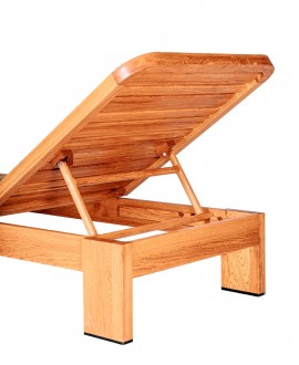 Продумана ергономічна форма забезпечує зручне розташування тіла, дозволяючи повністю розслабитися під час відпочинку. Натуральна дерев’яна конструкція стійка до навантажень і призначена для тривалого використання просто неба. Завдяки спеціальним підп’ятникам, ніжки шезлонга не дряпають підлогу та зберігають стабільність навіть на нерівній поверхні.