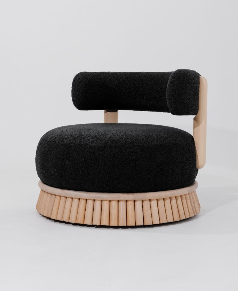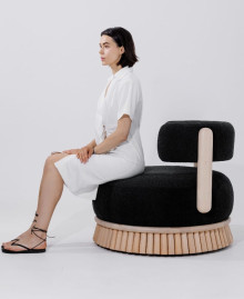 Дизайн від Kononenko ID переосмислює образ традиційної української хати, де характерні вертикальні елементи спинки, що нагадують солом’яну стріху, створюють відчуття органічного спокою та візуальної невагомості.