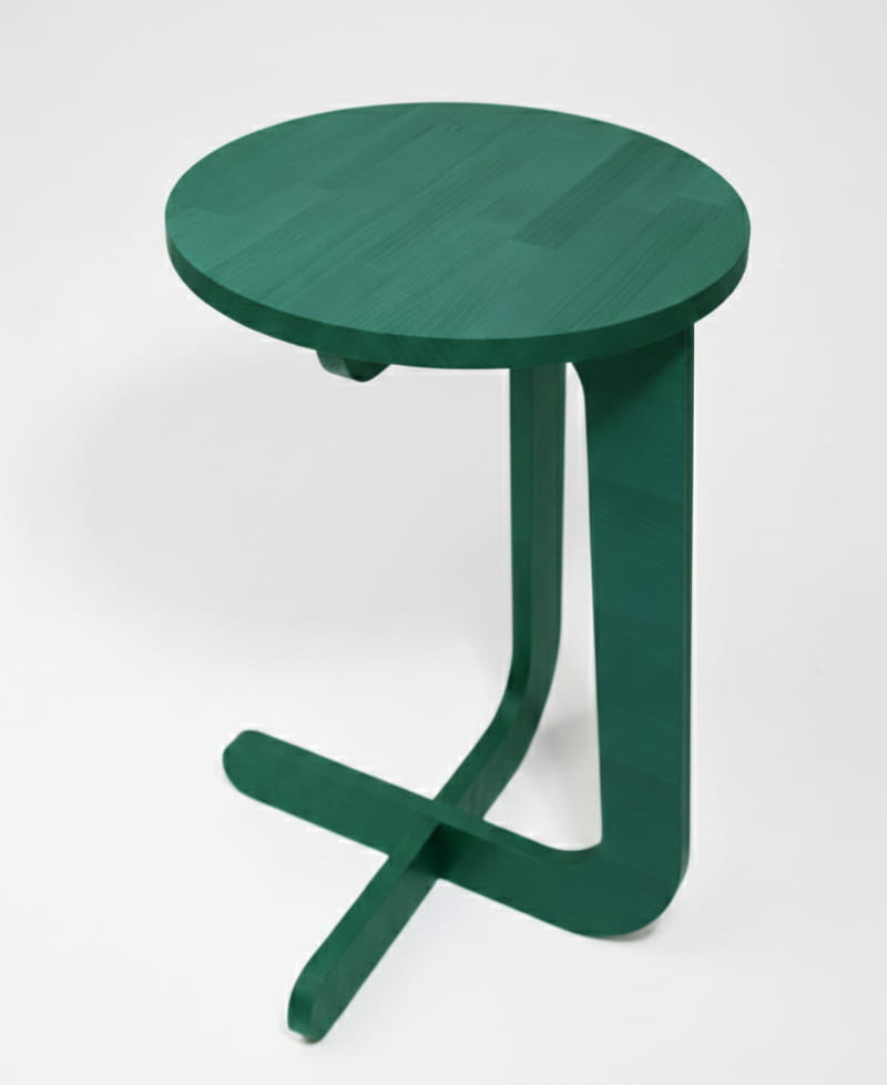 Дерев'яний С-подібний столик LIGNO (Кругла стільниця, Alpine Green)