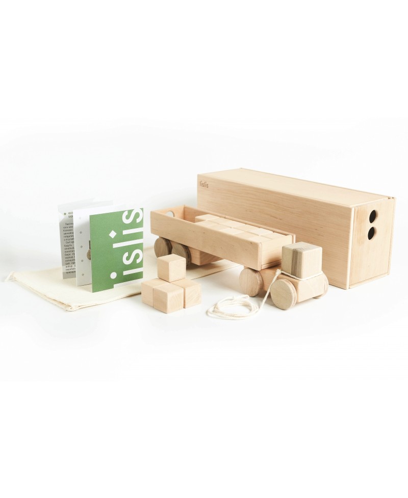 Дерев’яна іграшка “Бортовик Великий” – справжній помічник у дитячих іграх. Ця дерев’яна вантажівка створена для маленьких дослідників: вона легка, міцна та безпечна завдяки натуральній вільсі та ясені без лаку чи фарби. Бортовик перевезе 16 яскравих дерев’яних кубиків на зйомному причепі. Що всередині цих кубиків – таємниця! Малюк може вигадувати власні історії та ігрові сценарії, розвиваючи уяву, дрібну моторику та логічне мислення.