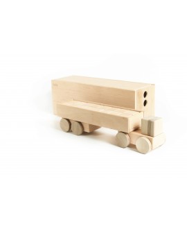 Бортовик Великий - екологічна, тактильна іграшка, виготовлена з деревини першого ґатунку вільхи та горіха, з тягачем, напівпричепом і гаражем.