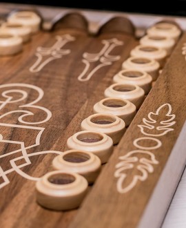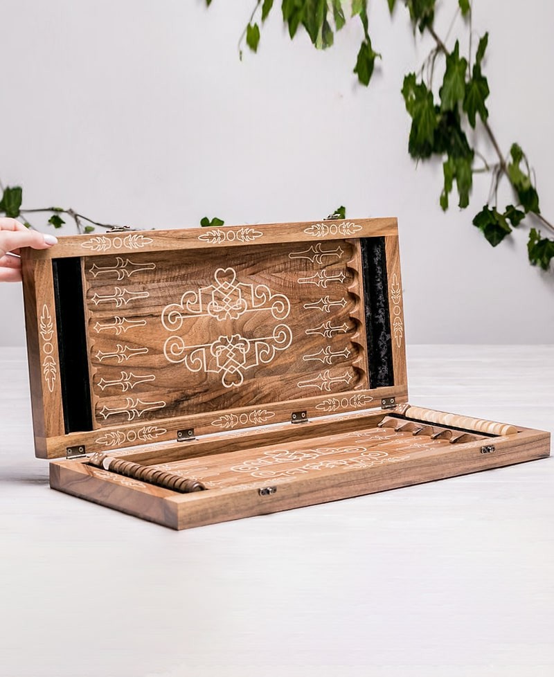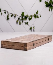 Представляємо стильні та практичні нарди з унікальним дизайном, виконані на високоякісному обладнанні та покриті міцним напівматовим лаком. Усі етапи створення виконуються вручну, що додає виробу особливої цінності.