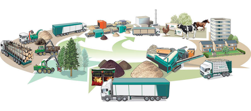 Частина матеріалу відбирається для переробки на стружку для ДСП, а решта використовується для енергетичного використання.