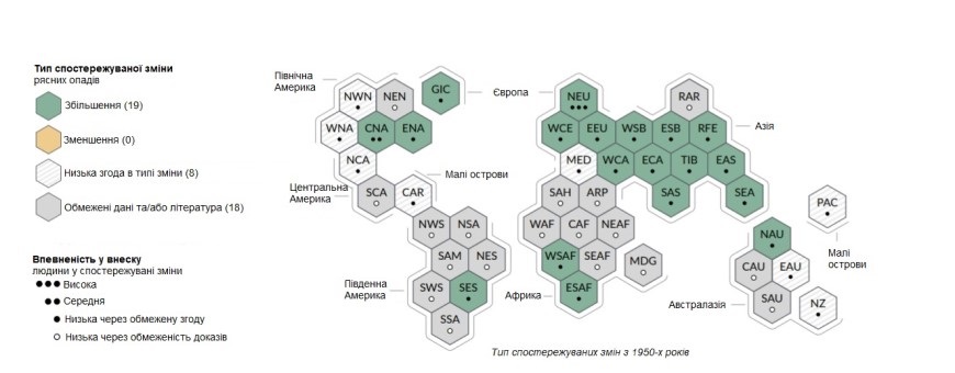 Оцінка зміни кількості рясних опадів у результаті діяльності людини: