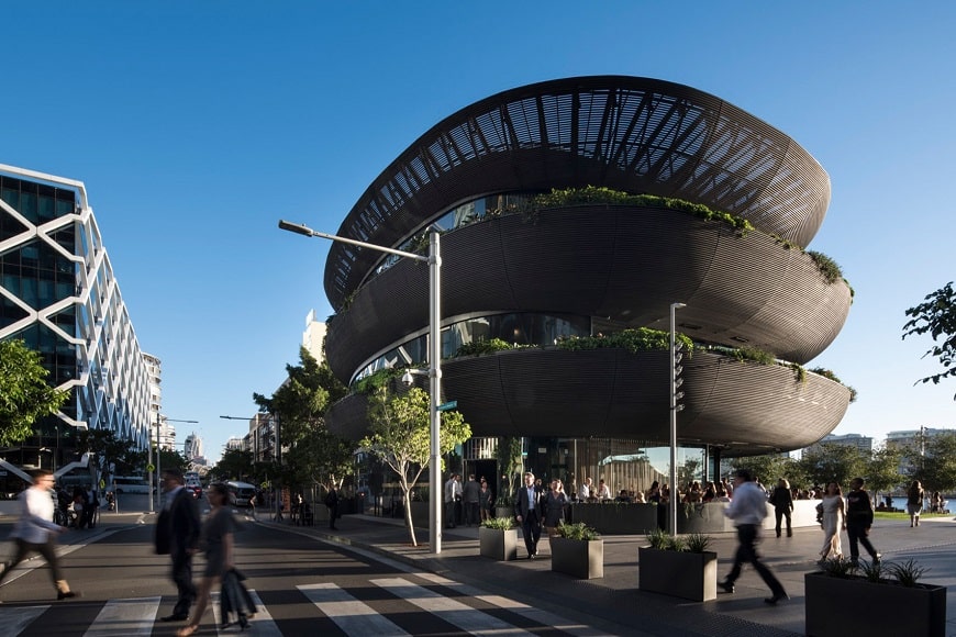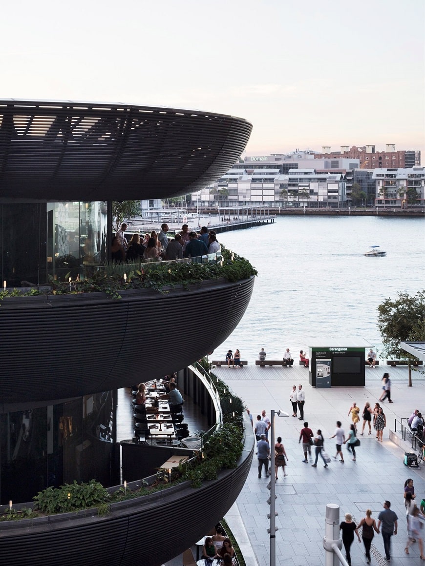Barangaroo House, окремий триповерховий ресторан, що став одним із перших проектів у Сіднеї, де використовується модифікована дерев’яна обшивка в поєднанні з характерною японською технікою обвуглювання Shou Sugi Ban.