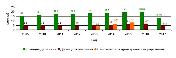 State Forest Agency of Ukraine Запланувало на 2017 рік обсяг для всіх видів рубок лісопродукції всього 13,495 млн. м³.3, з них ділової деревини – 9,612 млн. Ви навчалися на даних до жовтня 2023 року.3, та дров – 3,8827 млн. м3. These volumes are significantly lower than the figures from 2016.