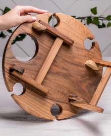 Пропонуємо дерев'яний столик для романтичних вечорів у ліжку. Він ідеально підходить для подачі вина, келихів і закусок, створюючи затишну атмосферу. Завдяки продуманому дизайну та магнітним фіксаторам, ноги столика надійно закріплюються в будь-якому положенні.