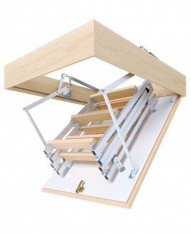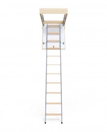 Біла кришка люка та благородна структура дерева створюють чудовий естетичний вигляд, що дозволяє використовувати сходи у приміщеннях з будь-яким інтер'єром.