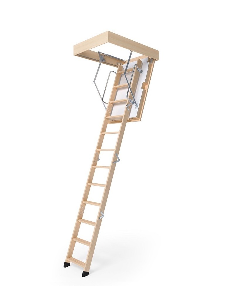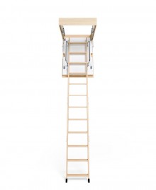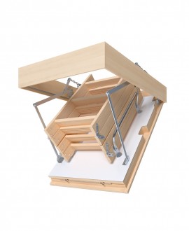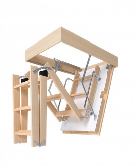 Сходи «Double Luxe Mini» максимально економлять житловий простір, так як компактно складаються в стельовому отворі. Металеві деталі забезпечують легке та надійне відкривання і закривання конструкції.