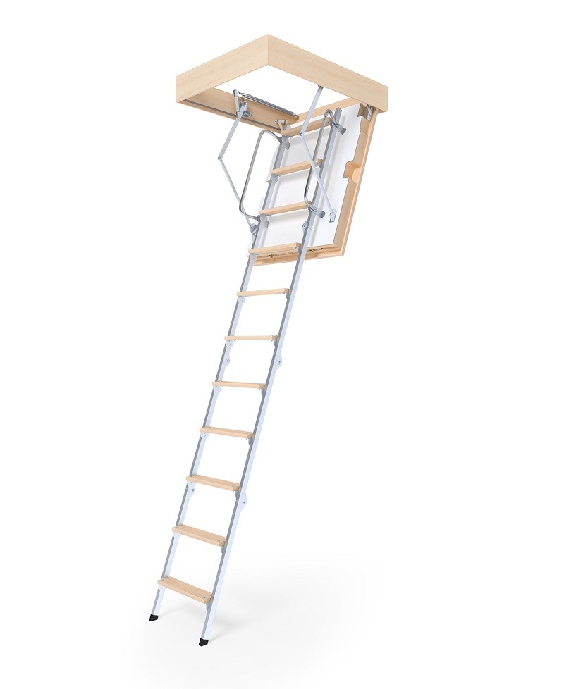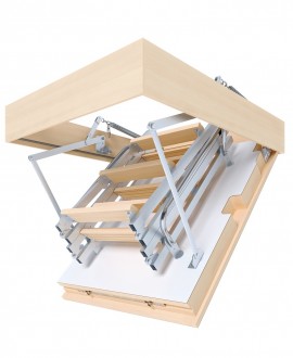 Горищні сходи Double Luxe Metal відрізняються особливою міцністю і зручністю використання. Сучасний дизайн, інноваційна конструкція з дерева з металевими направляючими роблять їх незамінними для власників будинків з горищем або мансардою.